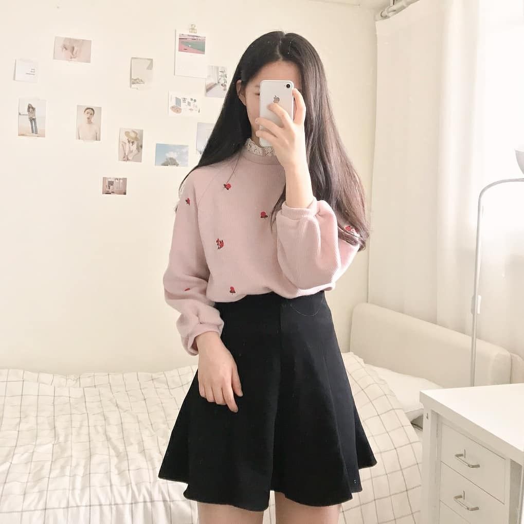 Short skirt / A-line skirt is always must-have in Korean style. It goes well with many outfits, such as the casual t-shirt, oversized ladies shirt, etc. It’s not only easy-matching but also helpful to extend your leg length and trim your legs. Tuck your shirt/ t-shirt into skirt can effectively enhance the waistline.